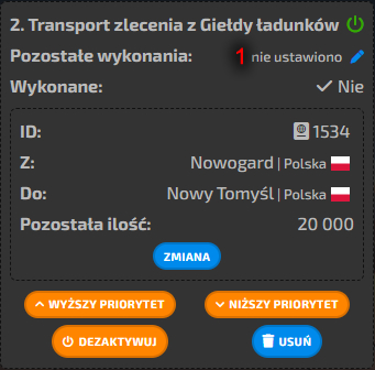 Możliwość ustawienia ilości wykonań danego zadania. Przydatne przy zleceniach o nierównych ilościach ładunków, ponieważ jeżeli jedno zadanie jest większe od drugiego to samochód mimo, że skończył zadanie nie przejdzie do kolejnego ponieważ zadanie mimo, że zostało wykonane dalej jest aktywne. By temu zapobiec możemy obliczyć ile kursów (zależne od ładowności samochodu) jest potrzebne do ukończenia tego zadania, wpisujemy wynik i po wykonaniu tej ilości zadanie zostaje wyłączone z harmonogramu i samochód przechodzi do kolejnego.