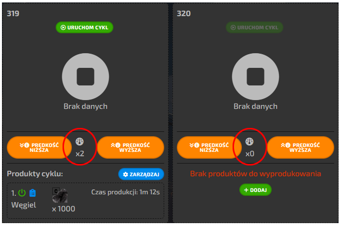 Posiadając fabrykę rozbudowaną do 2 poziomu i posiadając 2 linie produkcyjne, możemy w jednej z nich prędkość zmniejszyć o jeden, a w innej ten jeden dodać przez co fabryka posiada jedną linię produkcyjną, ale przyspieszoną jakby pracowały dwie.